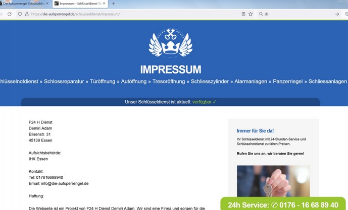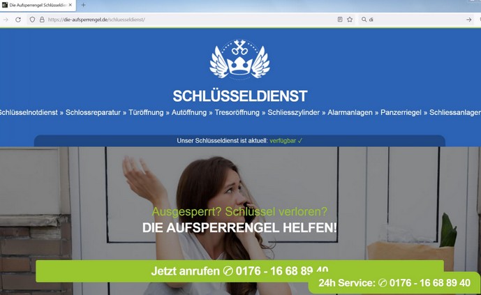 2021: Nach wie vor existiert die Domain die-aufsperrengel.de und nach wie vor wird damit kräftig und vor allem bundesweit geworben: