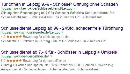 Warnung vor Schlüsseldienst Leipzig im Internet. Wie überall in Deutschland tauchen auch hier zumeist auf der ersten Seite in Suchmaschinen Werbeanzeigen besonders windiger Geschäftemacher auf: